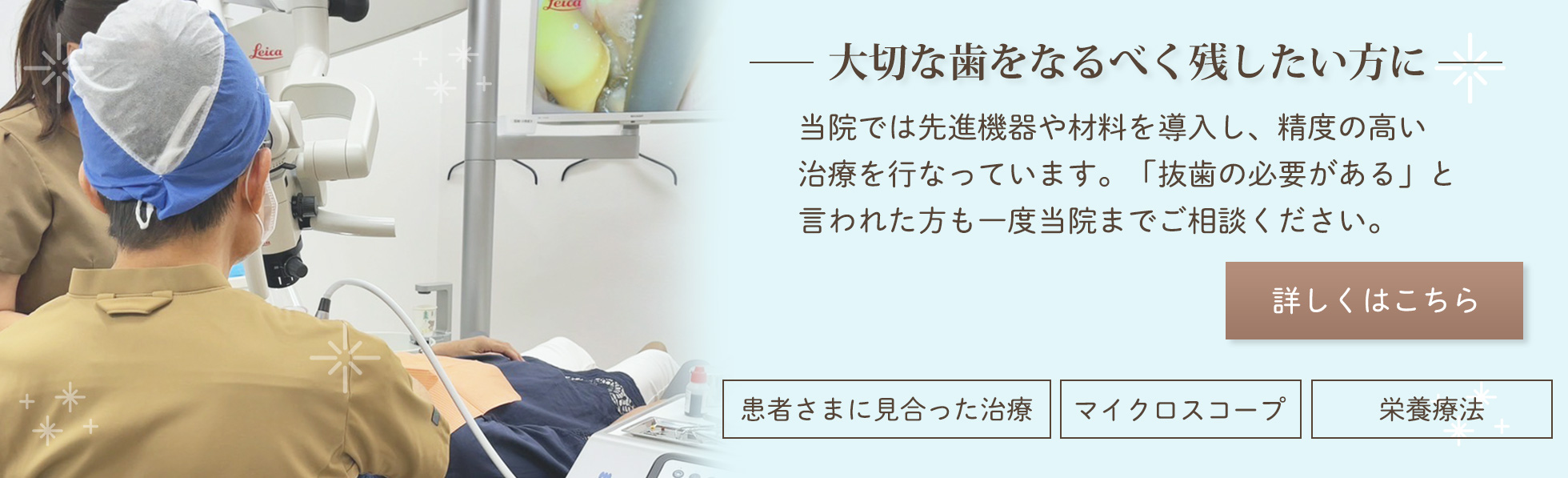 当院は、デンタルエステ・メンテナンス・歯内治療(根管治療)・精密入れ歯・審美治療など、各分野の専門的な治療を行う歯科医師が集結する歯科医院です。患者さまのご希望とお口の状態に適した治療をご提供するために、高い技術とよりよい歯科材料を用いる自由診療に特化しています。
