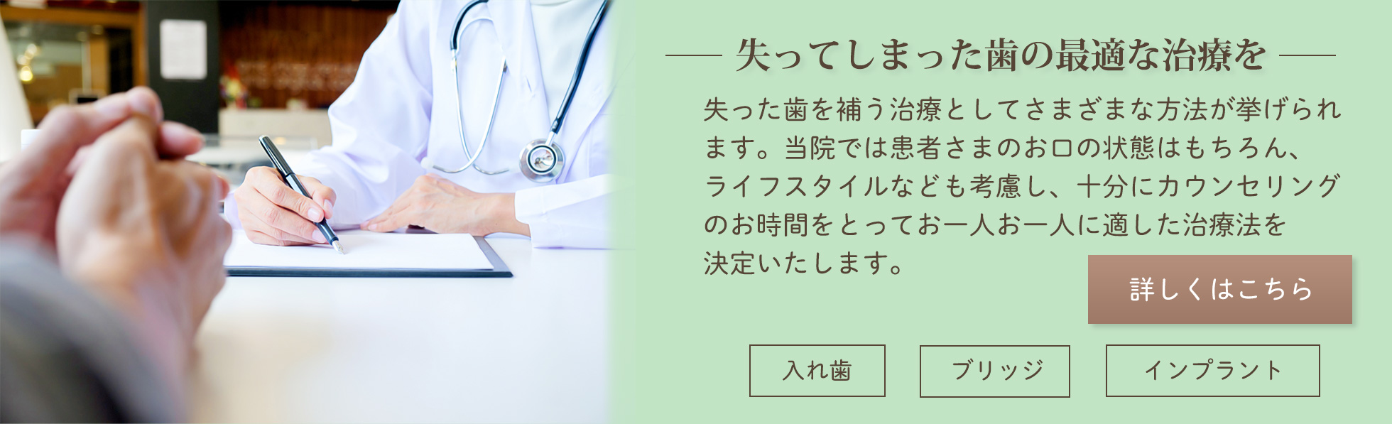 顔の印象は、口元の印象が重要です。当院では「噛む」「話す」などの機能面の回復を重視するとともに、患者様さまそれぞれのお顔のバランスに合わせ、見た目の美しさも追及しております。